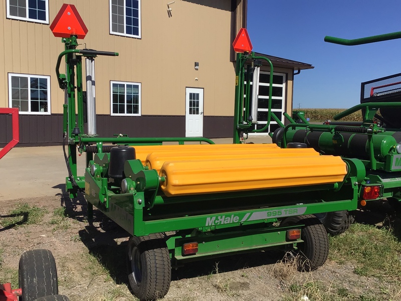NEW MCHALE 995 TSR; THE MCHALE 995 TSR IS A TRAILED, SINGLE DISPENSER, FULLY AUTOMATIC REMOTE CONTROL SQUARE BALE WRAPPER RANGE WHICH IS A PRACTICAL AND VERSATILE SOLUTION FOR WRAPPING LARGE SQUARE BALES.